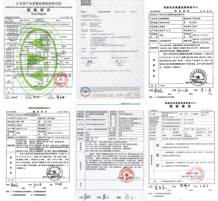 公司每一类产品在推向市场前均须经过国家权威部门检测认证。我司的电火花线切割机床、电火花穿孔机、数控加工、数控雕铣机、加工用水基工作液均通过了国家质量监督检验检疫总局和机械工业电加工机床产品质量监督检测的检测认证。同事我司各类产品还通过国家出口许可的检测认证。在数控雕铣机和水基工作液目前还没有国家标准的情况下,我司自定了高要求的企业标准,通过了行业的认可并在质量监督局注册登记。水基工作液还获得了省高新技术产品和发明专利,通过了欧盟ROSH认证,完全满足环保要求。